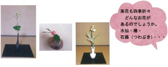 | 講座内容 | お茶が初めての方、老若男女どなたでも、一緒に体験してみませんか?長いブランクのある方も初心に戻り、皆さんで楽しみましょう。 お菓子のいただきかた・抹茶の点(た)てかた、いただきかた・茶道に関する諸知識等、基本を一緒に学びましょう。 |