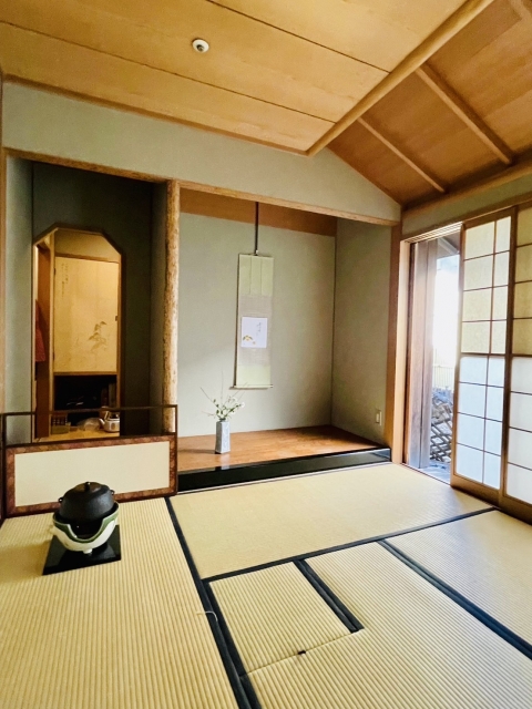 | 講座内容 | 亭主と客、お互いに尊重しながら、一服の茶を美味しく味わうことを目標としています。 茶室で薄茶点前、広間で盆略点前の稽古をしています。 初めての方、久しぶりの方、先ずはお茶を飲みに来ませんか?自分のペースでひとつずつ学んでいきましょう。 |