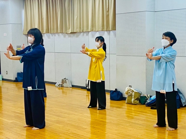 | 講座内容 | 伝統楊式太極拳(一段)と練功十八法(中国の健康体操)、呼吸法(八段錦から一部)をゆっくり練習します。 ゆっくりと動いて少しずつ足腰も丈夫になっていきます。 だんだん変わってくる体の変化を感じてみませんか? 動くことを楽しみながら心も体も元気になりましょう。 初めての方どうぞ! |