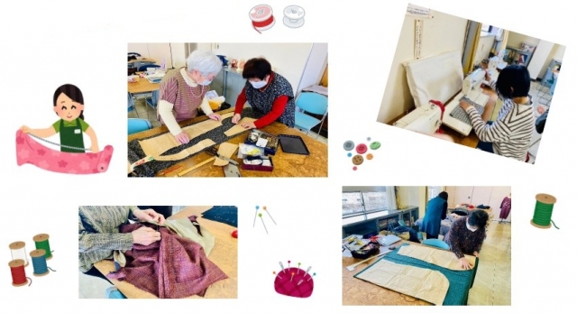 | 講座内容 | スカート作り(タイトスカート、セミタイトスカート)製図→裁断→仮縫→本縫、と基礎から学びます。設備が整っている教室です。 服作りに興味のある方、一緒に楽しく作りましょう♪ |