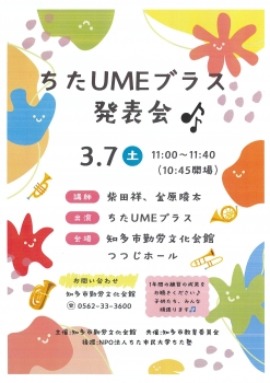 昨年、テレビ朝日「題名のない音楽会」に出演した「ちたUMEブラス(子どものブラスバンド)」の発表会が行われます♪
